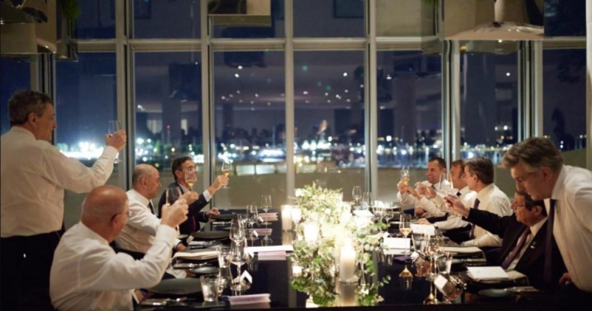 Οι προπόσεις, καθώς φαίνεται, έδωσαν και πήραν, με τον Μάριο Ντράγκι σε πρωταγωνιστικό ρόλο και τον Κυριάκο Μητσοτάκη πλάι στον «καλό του φίλο», όπως τον αποκάλεσε νωρίτερα, στη συνέντευξη Τύπου, Εμανουέλ Μακρόν.