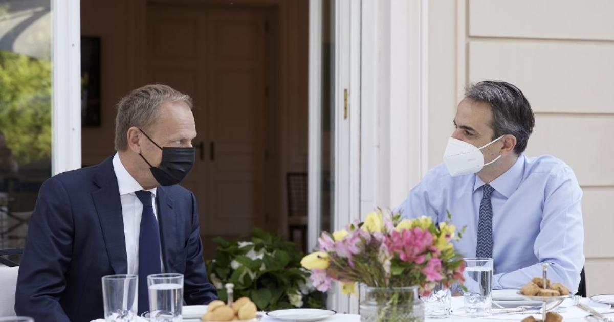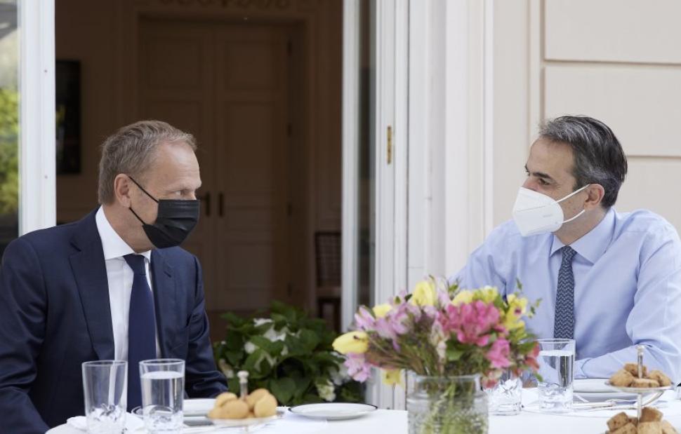 Πρόγευμα παρέθεσε στον Πρόεδρο του Ευρωπαϊκού Λαϊκού Κόμματος (ΕΛΚ), Ντόναλντ Τουσκ, το πρωί ο Πρωθυπουργός, Κυριάκος Μητσοτάκης.