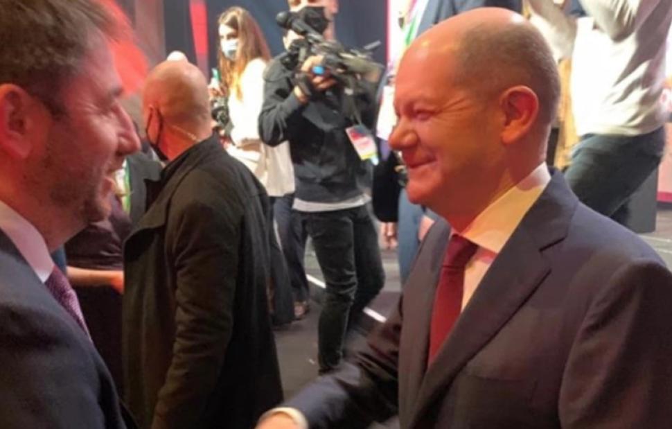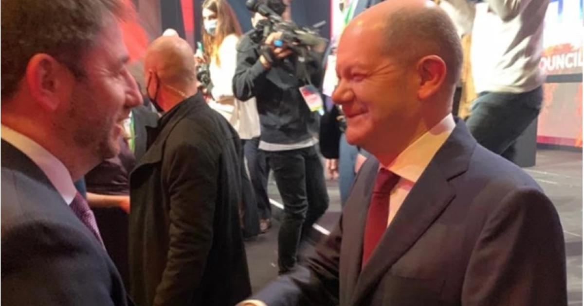 O πρόεδρος του ΚΙΝΑΛ είχε ολιγόλεπτο τετ α τετ με τον Καγκελάριο της Γερμανίας, Όλαφ Σολτς. Ο Νίκος Ανδρουλάκης συνεχάρη τον Όλαφ Σολτς για την εκλογή του ως Καγκελάριος και αντίστοιχα ο Όλαφ Σολτς για την εκλογική του νίκη στις πρόσφατες Εκλογές του ΚΙΝΑΛ.