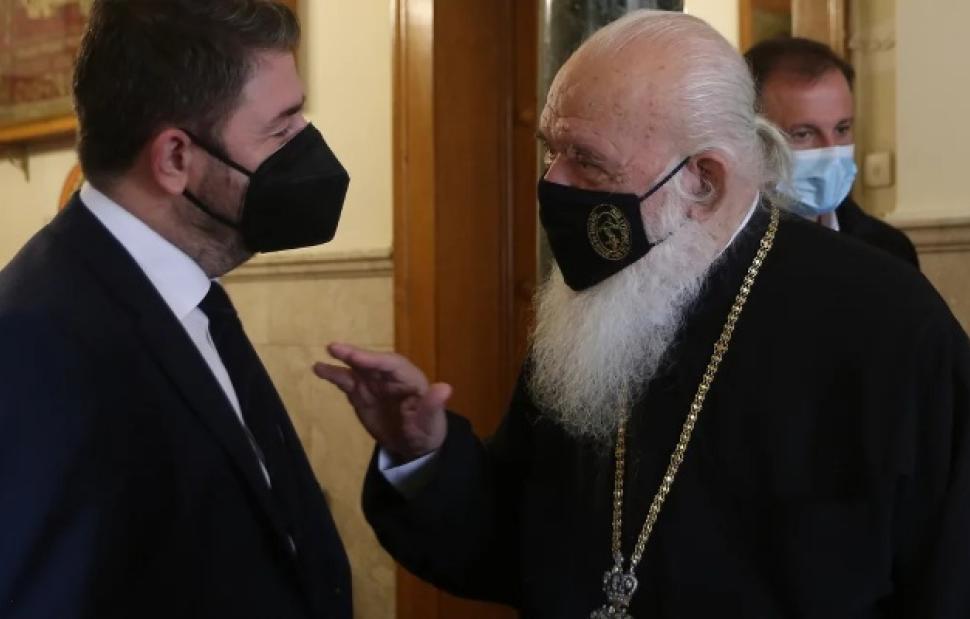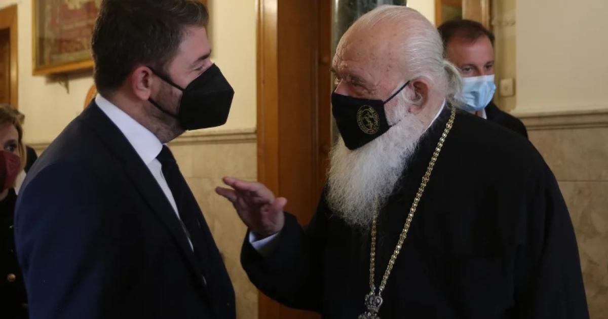 Εθιμοτυπική επίσκεψη στον αρχιεπίσκοπο Ιερώνυμο πραγματοποίησε, το πρωί, ο πρόεδρος του Κινήματος Αλλαγής, Νίκος Ανδρουλάκης.
