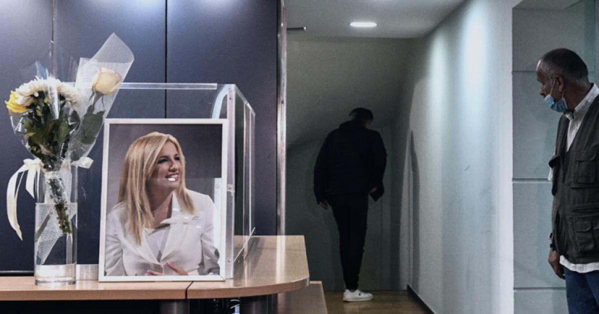 Μια ανθοδέσμη στην μνήμη της προέδρου του Κινήματος Αλλαγής και μια φωτογραφία της, βρίσκονται στην είσοδο του κτιρίου, ενώ από νωρίς στα κεντρικά γραφεία βρίσκονται βουλευτές και στελέχη του Κινήματος.