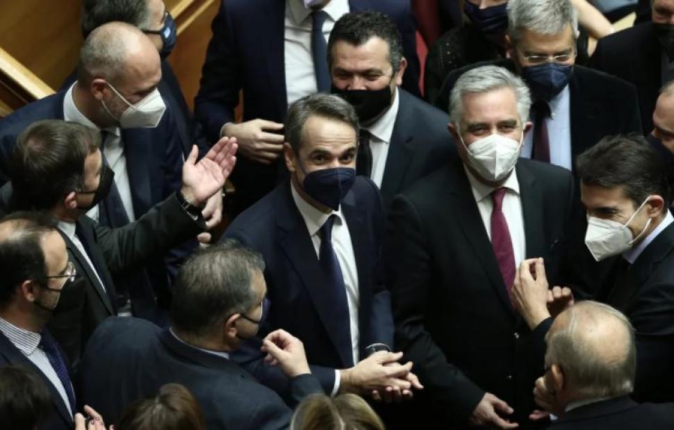Οι 156 βουλευτές της ΝΔ καταψήφισαν την πρόταση μομφής του ΣΥΡΙΖΑ ανανεώνοντας έτσι την εμπιστοσύνη τους στην κυβέρνηση. Από την ψηφοφορία απουσίαζε η Μαριέττα Γιαννάκου καθώς η βουλευτής της ΝΔ και πρώην υπουργός εισήχθη σήμερα στο νοσοκομείο και νοσηλεύεται στη ΜΕΘ του 251 ΓΝΑ σε σοβαρή κατάσταση.