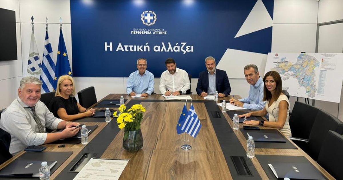 Προγραμματική σύμβαση που αφορά τη βιοκλιματική ανάπλαση του παράδρομου της Λεωφόρου Μεσογείων στα όρια του Δήμου Παπάγου - Χολαργού, ένα έργο που φιλοδοξεί να αλλάξει ριζικά την εικόνα της περιοχής διευκολύνοντας την ασφαλή και απρόσκοπτη μετακίνηση των πεζών, υπέγραψε ο Περιφερειάρχης Αττικής Νίκος Χαρδαλιάς με τον Δήμαρχο Παπάγου – Χολαργού Ηλία Αποστολόπουλο, τον Πρόεδρο της «Νέας Μητροπολιτικής Αττικής Α.Ε.» Δημήτρη Φραγκάκη και τον Διευθύνοντα Σύμβουλο του Οργανισμού, Γιώργο Κορμά.
