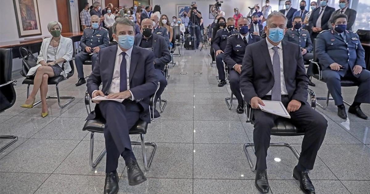 Ο κ. Χρυσοχοΐδης, σε κλίμα συγκίνησης, ευχαρίστησε τους αστυνομικούς και πυροσβέστες, τους επικεφαλής, τους γενικούς γραμματείς, ενώ επιφύλαξε ιδιαίτερη αναφορά στον Λευτέρη Οικονόμου και τον Νίκο Χαρδαλιά «που ανέλαβε ένα εξαιρετικά δύσκολο έργο – την διαχείριση της πανδημίας- και στην Πολιτική Προστασία έγιναν σπουδαία πράγματα».
