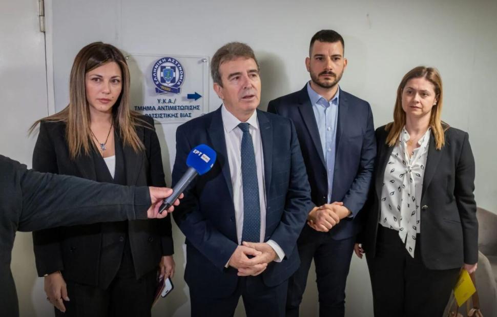 Τον υπουργό Προστασίας του Πολίτη συνόδευσαν η υπουργός Κοινωνικής Συνοχής και Οικογένειας, Σοφία Ζαχαράκη, η Γενική Γραμματέας Ισότητας και Ανθρωπίνων Δικαιωμάτων Ζέφη Δημαδάμα και ο Αρχηγός της ΕΛΑΣ, Αντιστράτηγος Δημήτρης Μάλλιος.