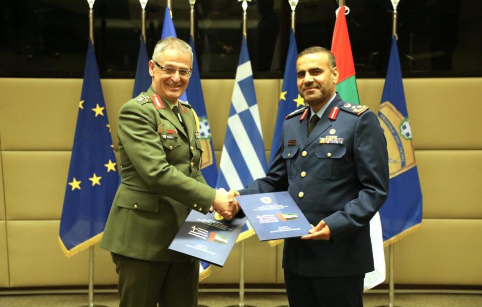 Το «Πρόγραμμα Στρατιωτικής Συνεργασίας Ελλάδας-Ηνωμένων Αραβικών Εμιράτων(ΗΑΕ)» για το έτος 2025, υπεγράφη χθες, Πέμπτη 10 Απριλίου, στο ΓΕΕΘΑ από τον διευθυντή του Κλάδου Στρατηγικής και Πολιτικής, Αμυντικού Σχεδιασμού-Δυνατοτήτων του ΓΕΕΘΑ (ΓΕΕΘΑ/Δ' ΚΛ) υποστράτηγο Ιωάννη Κορρέ και τον διευθυντή της Διεύθυνσης Στρατηγικής και Πολιτικής των Ενόπλων Δυνάμεων των ΗΑΕ, Brigadier Khalid Alkaabi.