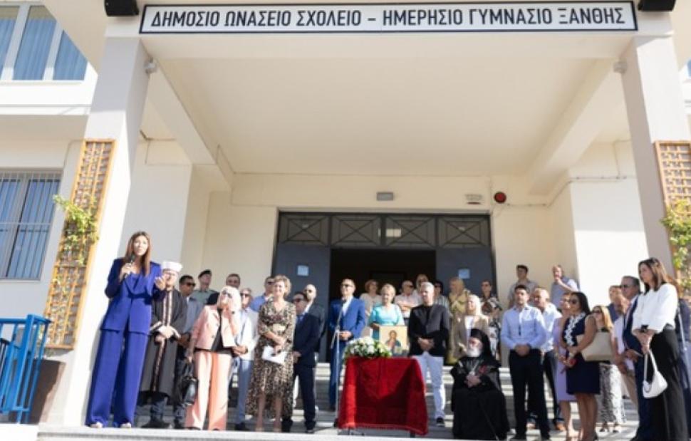 «Βρίσκομαι στην Ξάνθη για έναν ξεχωριστό λόγο, την έναρξη της σχολικής χρονιάς», ανέφερε η Σόφια Ζαχαράκη κατά τον αγιασμό στο Δημόσιο Ωνάσειο Γυμνάσιο Ξάνθης.