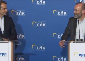 Την πολιτική της ελληνικής Κυβέρνησης εξήρε ο πρόεδρος του Ευρωπαϊκού Λαϊκού Κόμματος, Μάνφρεντ Βέμπερ. Ο Πρωθυπουργός, Κυριάκος Μητσοτάκης και ο πρόε...