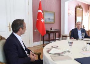 Ολοκληρώθηκε σύμφωνα με τις πρώτες πληροφορίες, που μετέδωσε η ΕΡΤ, η συνάντηση του Κυριάκου Μητσοτάκη και του Ρετζέπ Ταγίπ Ερντογάν. Ο Τούρκος πρόεδρ...