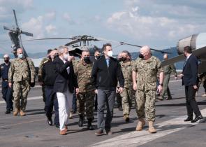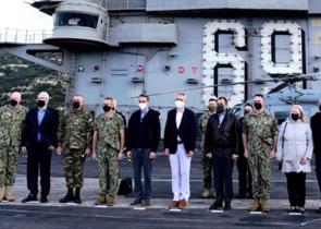 Το τεράστιο αεροπλανοφόρο του Ναυτικού των ΗΠΑ «USS Dwight D. Eisenhower» επισκέφτηκε το πρωί ο Κυριάκος Μητσοτάκης. Το αμερικανικό αεροπλανοφόρο είν...