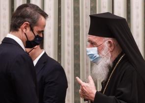 Σύντομη συνομιλία είχαν ο πρωθυπουργός, Κυριάκος Μητσοτάκης και ο Αρχιεπίσκοπος Αθηνών και πάσης Ελλάδας, κατά τη διάρκεια της ορκωμοσίας των νέων μελ...