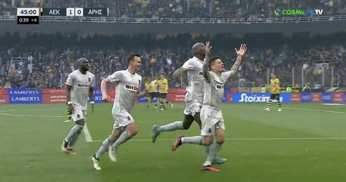 Η ΑΕΚ αντιμετωπίζει τον Αρη στην Opap Arena για την 4η αγωνιστική των πλέι οφ της Super League, με το πρώτο ημίχρονο να ολοκληρώνεται με το σκορ στο 1-1.