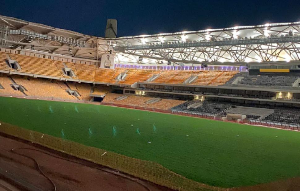 Πρόκειται για μια πολύ εντυπωσιακή λήψη, παρόλο που οι διαδικασίες για το φωτισμό του γηπέδου είναι ακόμα σε πρώιμο στάδιο. Η εν λόγω φωτογραφία αφορούσε την πλευρά του γηπέδου όπου θα βρίσκονται τα δημοσιογραφικά και οι Vip μαζί με τις σουίτες.