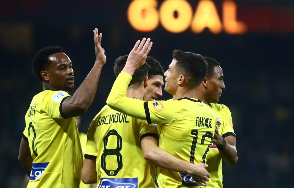 Η ΑΕΚ μπήκε με το πόδι στο… γκάζι στην αναμέτρηση και στο 4ο λεπτό κέρδισε πέναλτι μετά από σπρώξιμο του Σπίνου στον Λιβάι Γκαρσία.