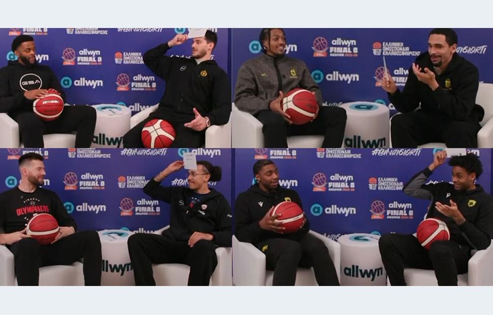 Η Allwyn, χορηγός ονοματοδοσίας της διοργάνωσης και Χρυσός Χορηγός της Ελληνικής Ομοσπονδίας Καλαθοσφαίρισης (ΕΟΚ), βρήκε την ευκαιρία να υποβάλλει σε ένα απολαυστικό challenge τους παίκτες των 4 ομάδων που αγωνίζονται στους πρώτους προημιτελικούς. Συγκεκριμένα, τους προκάλεσε να περιγράψουν έναν συμπαίκτη τους μέσα σε μόλις 24 δευτερόλεπτα.