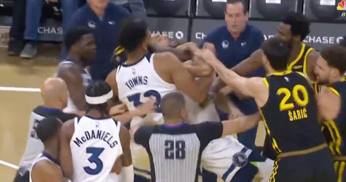 The Warriors and T-Wolves got into a scuffle in the first 1:43 of play.