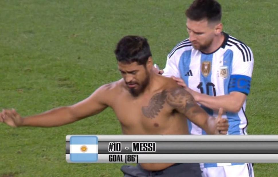 Αμεσα οι σεκιούριτι του γηπέδου επενέβησαν και λίγο έλειψε, να τραυματίσουν τον Λιονέλ Μέσι στην προσπάθειά τους να απομακρύνουν τον φίλαθλο!