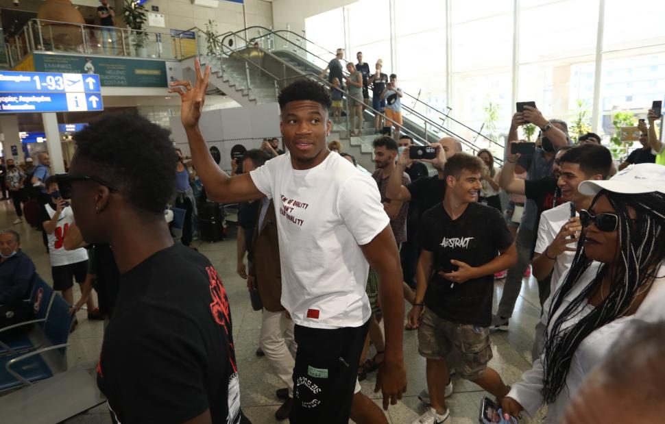 Στο «Ελευθέριος Βενιζέλος» επικρατεί πανδαιμόνιο, με τον κόσμο να εκδηλώνει για ακόμη μια φορά την αγάπη του προς το πρόσωπο του Γιάννη Αντετοκούνμπο.