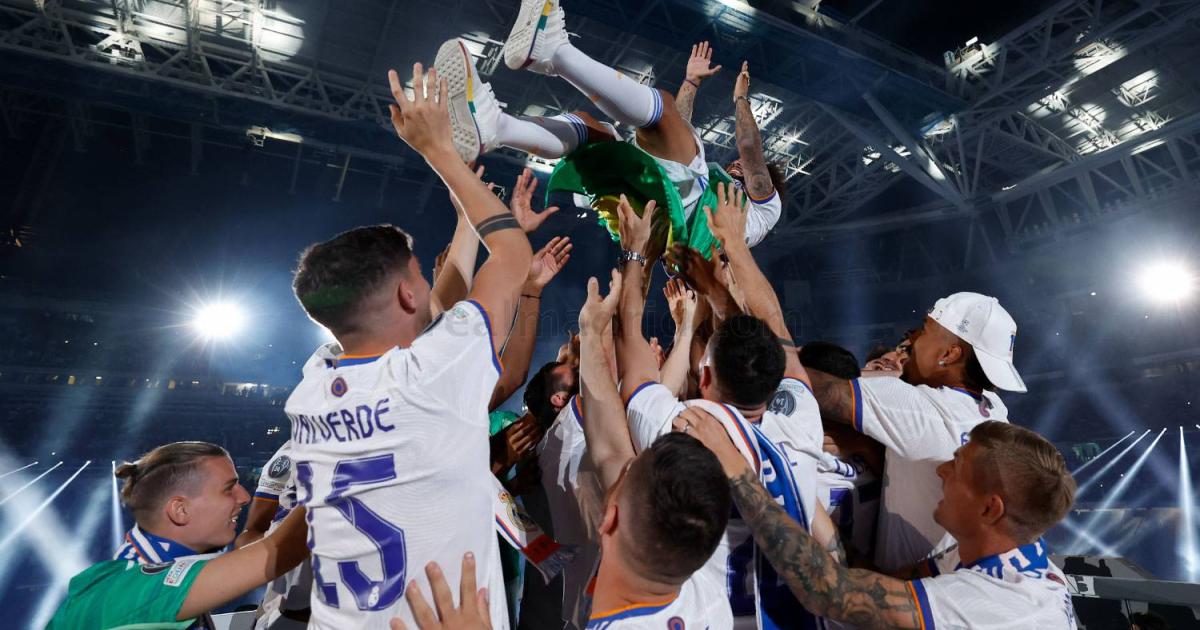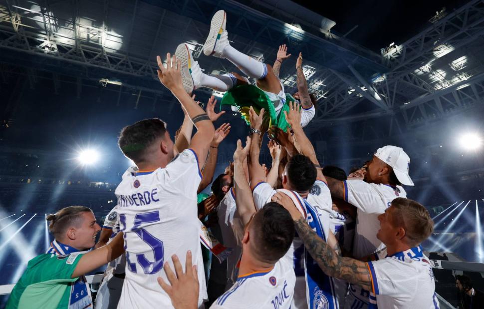 Οι οπαδοί της Ρεάλ είχαν την ευκαιρία να αποθεώσουν τους ποδοσφαιριστές και τον Κάρλος Αντσελότι, μαζί με τα δύο τρόπαια που κατέκτησαν φέτος: το Champions League και το πρωτάθλημα Ισπανίας.