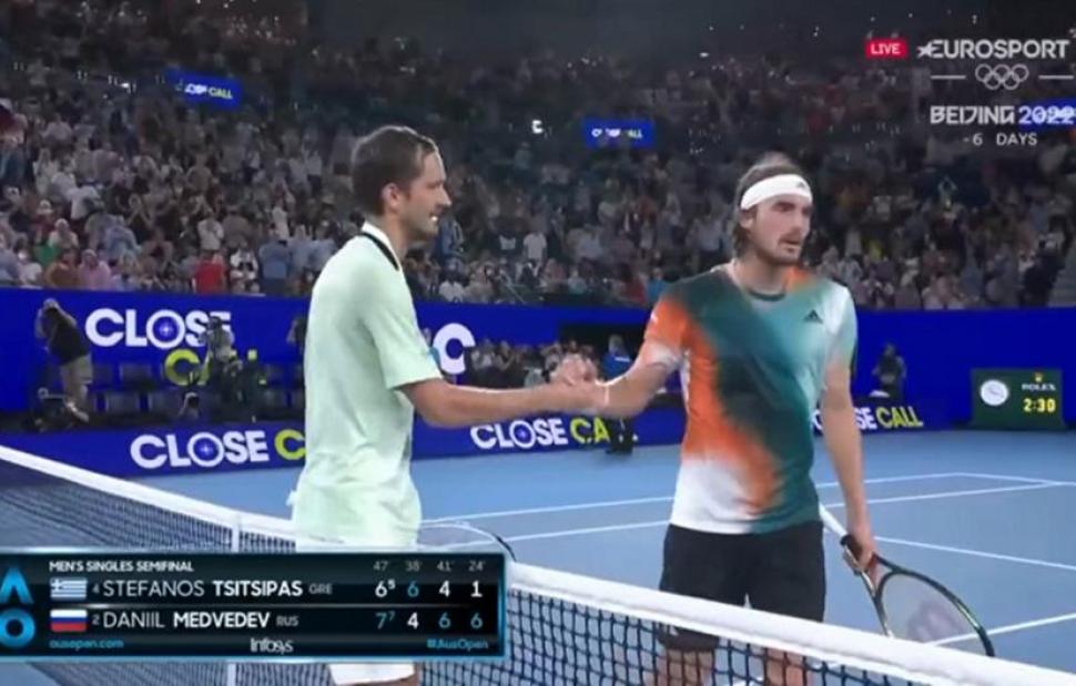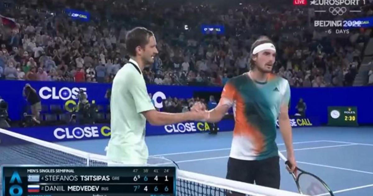 Μετά από έναν συγκλονιστικό ημιτελικό, ο 23χρονος Έλληνας τενίστας έχασε 3-1 σετ (6-7, 6-4, 4-6, 1-6) από τον Ντανιίλ Μεντβέντεφ και αποκλείστηκε από τη συνέχεια του αυστραλιανού grand slam.