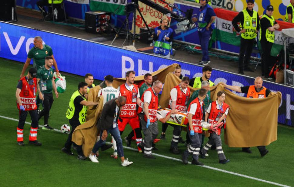 Το παιχνίδι διεκόπη, όλοι έσπευσαν πάνω από τον Ούγγρο επιθετικό που έδειχνε να μην έχει τις αισθήσεις του και λίγα λεπτά μετά μεταφέρθηκε εκτός αγωνιστικού χώρου με φορείο.