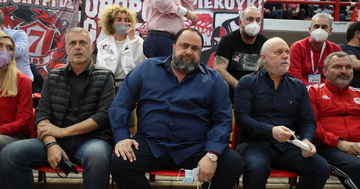 Ο ιδιοκτήτης της ΠΑΕ Ολυμπιακός, Βαγγέλης Μαρινάκης δίνει το παρών στο «Παπαστράτειο» και παρακολουθεί από κοντά τον μεγάλο τελικό των κοριτσιών.