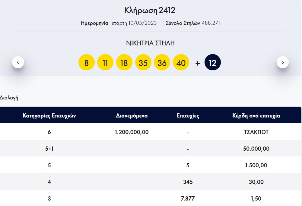 Τζακ ποτ τόσο στην πρώτη, όσο και στη δεύτερη κατηγορία του Λόττο σημειώθηκε στην κλήρωση 2412 της Τετάρτης.
