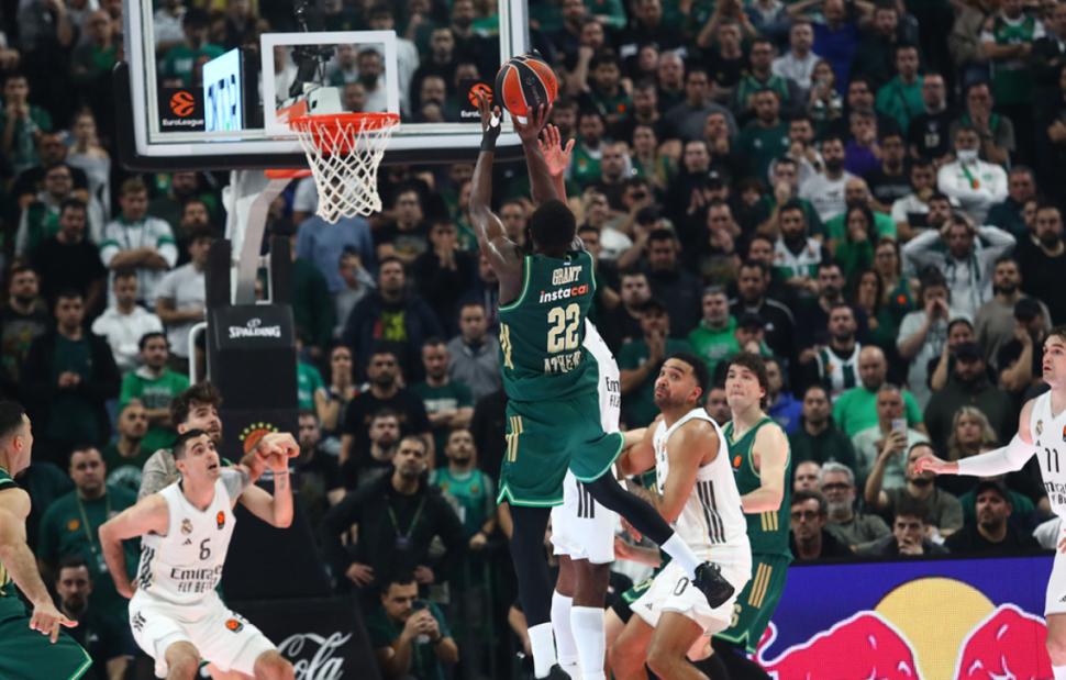 Οι «πράσινοι» νίκησαν 82-81 τη Ρεάλ Μαδρίτης στο ΟΑΚΑ, για την 26η αγωνιστική της Euroleague, με καλάθι του Τζέριαν Γκραντ στην εκπνοή του αγώνα.