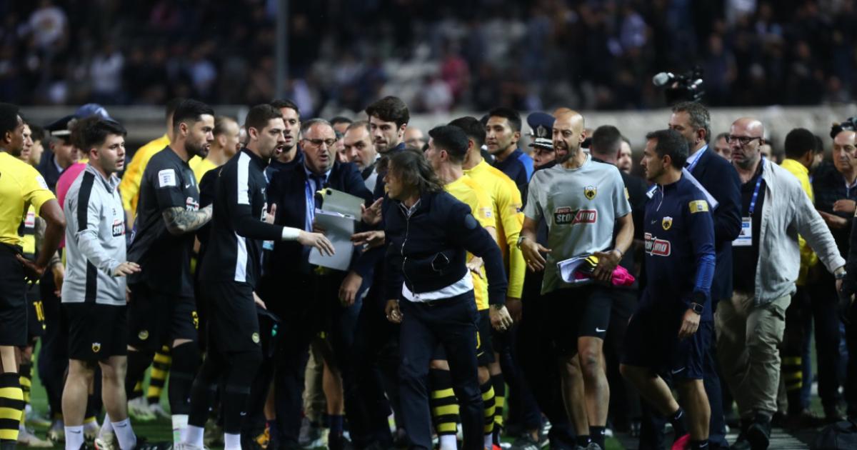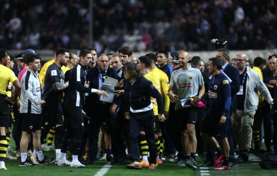 Όπως φάνηκε μάλιστα από το τηλεοπτικό πλάνο, ο Κάρλος Ρόα ήταν εκείνος που προσπαθούσε να κρατήσει τον τεχνικό της ΑΕΚ που πρώτη φορά σε αυτά τα δύο χρόνια του στην Ελλάδα, έχασε τον έλεγχο.