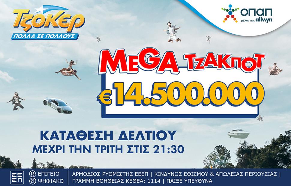 Λίγες ώρες απομένουν για τη μεγάλη κλήρωση του ΤΖΟΚΕΡ, η οποία το βράδυ της Τρίτης αναμένεται να μοιράσει τουλάχιστον 14,5 εκατ. ευρώ σε έναν ή περισσότερους νικητές που θα προβλέψουν σωστά του 5+1 αριθμούς που θα βγάλει η κληρωτίδα.