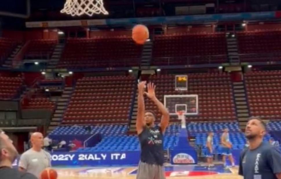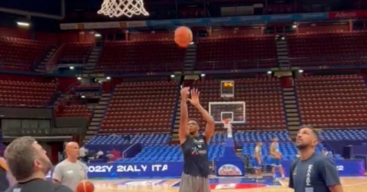 Το βίντεο που αναρτήθηκε στο Twitter από ιταλική πηγή, δείχνει τον Γιάννη Αντετοκούνμπο να κάνει τα «σουτάκια» του από τη γραμμή των βολών, κάνοντας μάλιστα το 3 στα 3.