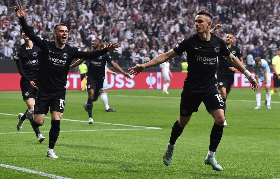 Στη Φρανκφούρτη, το έργο της Αϊντραχτ για την πρόκριση στον τελικό έγινε πιο βατό όταν στο 22′ η Γουέστ Χαμ έμεινε με δέκα παίκτες λόγω της αποβολής του Κρέσγουελ για το μαρκάρισμα στον Ράφαελ Μπορέλ. Τέσσερα λεπτά αργότερα ο Κναουφ γύρισε τη μπάλα στον Μπορέλ κι ο Κολομβιανός πέτυχε το τελικό 1-0 για τη γερμανική ομάδα που σε συνδυασμό με τη νίκη της 2-1 στην Αγγλία, πήγε σε τελικό ευρωπαϊκής διοργάνωσης μετά από 42 χρόνια.