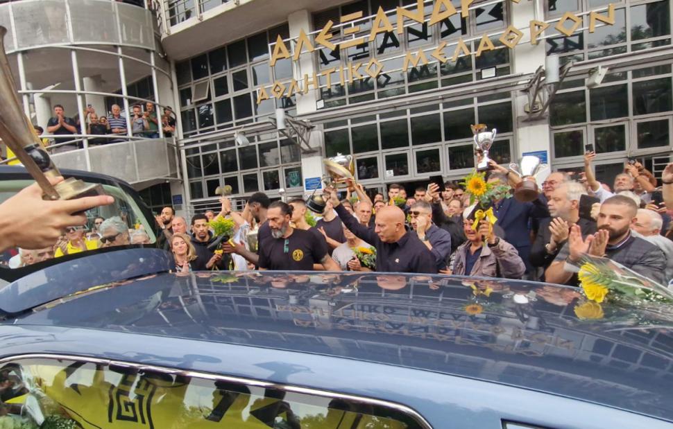 Συγκινητικές στιγμές εκτυλίχθηκαν στο «Αλεξάνδρειο Μέλαθρο» στη Θεσσαλονίκη. Το φέρετρο με τη σορό του, σκεπασμένο με τη σημαία του Άρη, έφτασε στο «Αλεξάνδρειο», μέσα σε αποθέωση από τον κόσμο, λίγο πριν τις 4 το απόγευμα.