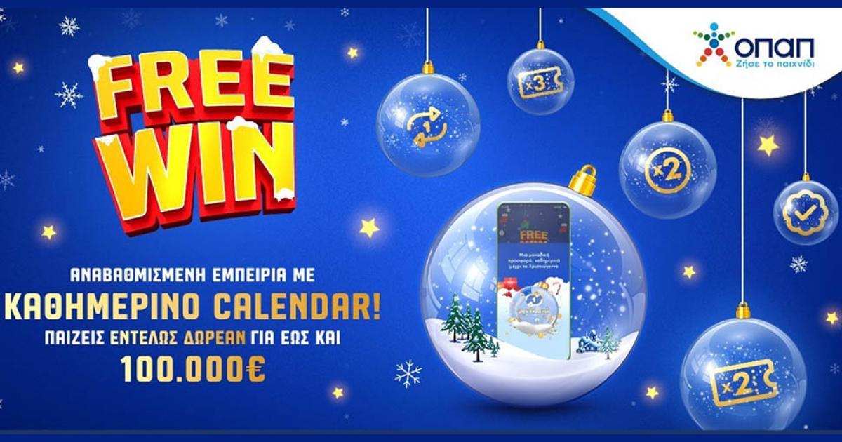 Το FREEWIN στα καταστήματα ΟΠΑΠ μπαίνει σε εορταστικό κλίμα, επιφυλάσσοντας καθημερινά εκπλήξεις για τους παίκτες.