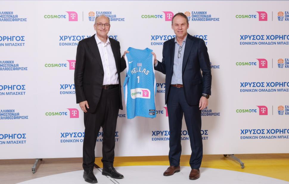 Χρυσός Χορηγός των Εθνικών Ομάδων Μπάσκετ (Ανδρών, Γυναικών και Νεών – U20, U18, U16) μέχρι και το 2030 θα είναι η COSMOTE TELEKOM, η οποία αναλαμβάνει και Επίσημος Χορηγός της Ελληνικής Ομοσπονδίας Καλαθοσφαίρισης (ΕΟΚ). Ως Χρυσός Χορηγός των Εθνικών Ομάδων Μπάσκετ η COSMOTE TELEKOM θα προβάλλεται στο μπροστινό μέρος της αγωνιστικής φανέλας.