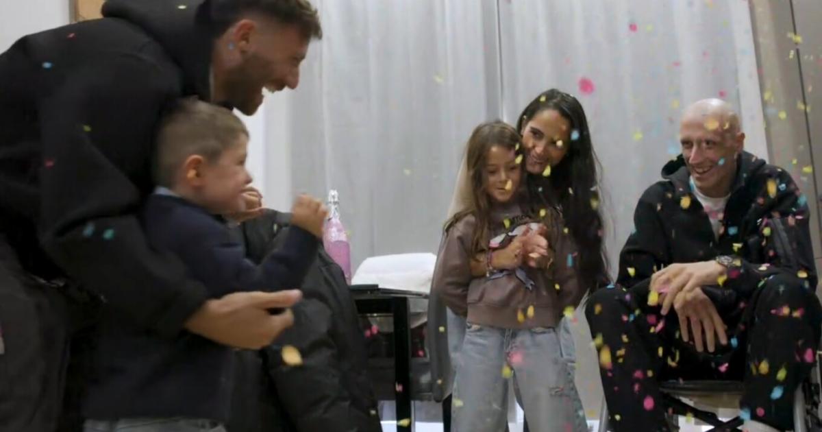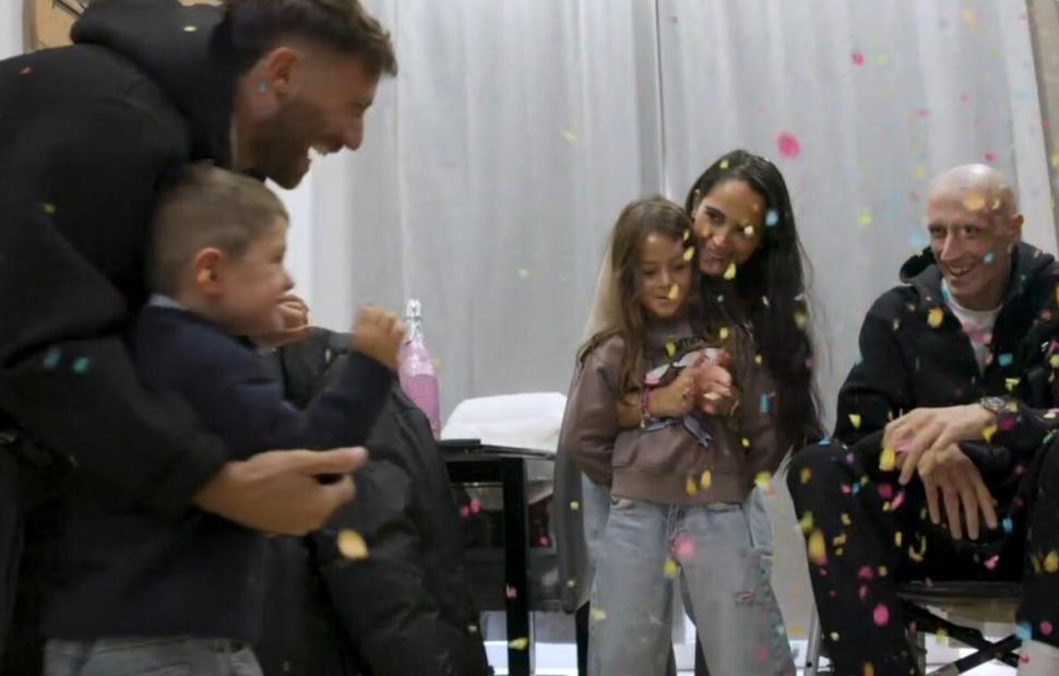 Η στιγμή που έκανε όλη την Ιταλία να λυγίσει ήταν όταν ο 33χρονος μπασκετμπολίστας πήρε αγκαλιά την σύζυγο του και τα δύο παιδιά, τα οποία είχαν ετοιμάζει και ζωγραφιές γεμάτες χρώματα για να τον καλωσορίσουν.