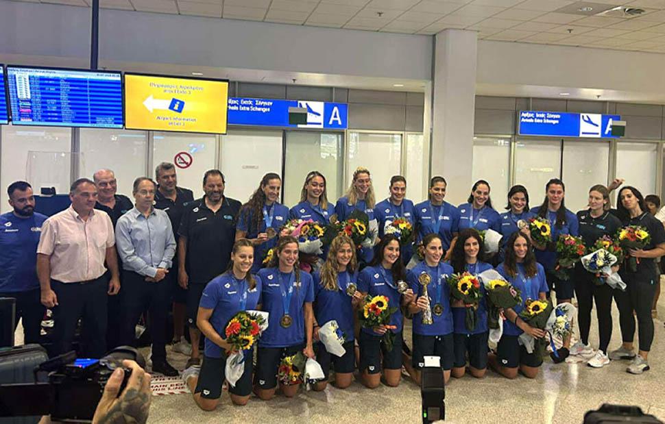 Η Παγκόσμια Πρωταθλήτρια 2025 Εθνική oμάδα πόλο Γυναικών επέστρεψε στην Ελλάδα, φέρνοντας στις αποσκευές της το χρυσό μετάλλιο από το Παγκόσμιο Πρωτάθλημα της Σιγκαπούρης. Η ελληνική αποστολή προσγειώθηκε στο αεροδρόμιο «Ελευθέριος Βενιζέλος» λίγο πριν τις 07:00 το πρωί της Παρασκευής, με πτήση μέσω Ντόχα.