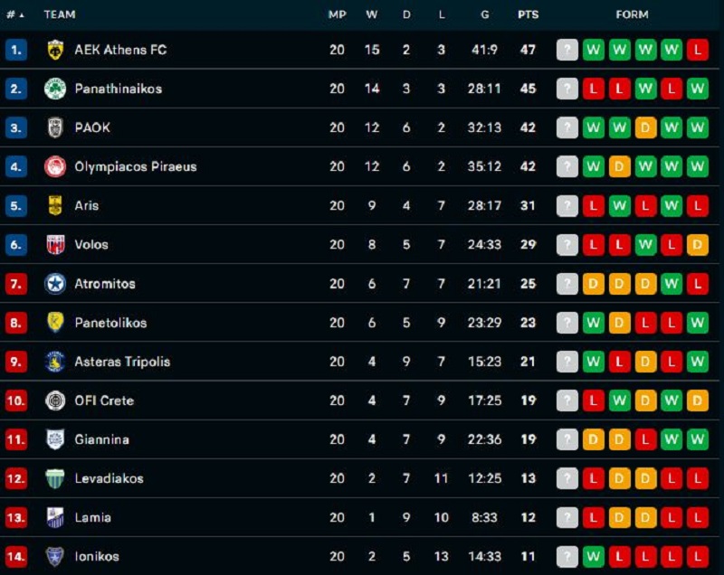 Ο Παναθηναϊκός δεν μπόρεσε να περάσει από την Τρίπολη και ηττήθηκε από τον Αστέρα με σκορ 1-0. Έτσι οι «πράσινοι» έπεσαν μετά από πάρα πολύ καιρό από την κορυφή της βαθμολογίας έχοντας 45 πόντους, βλέποντας την ΑΕΚ να τους προσπερνά με τους 47. Όσον αφορά τους Αρκάδες, έφτασαν τους 21 βαθμούς και την 9η θέση.