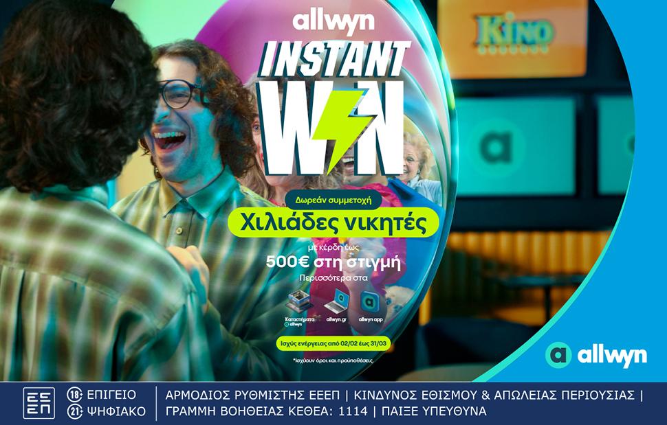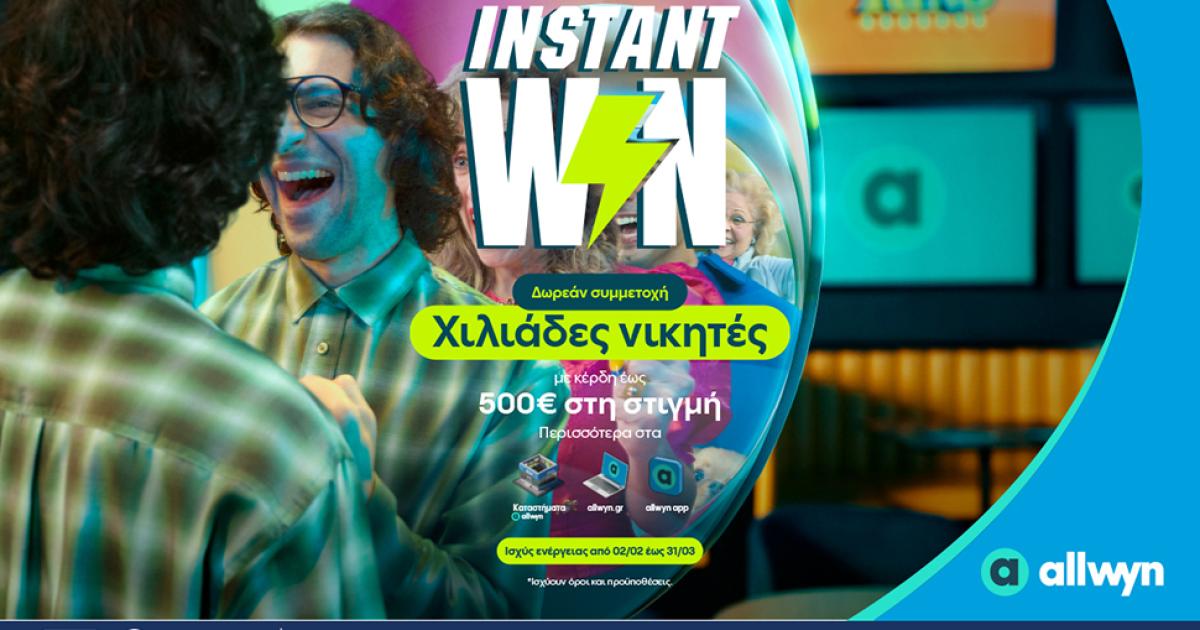 Η Allwyn καλωσορίζει τη νέα εποχή στη διασκέδαση με το Instant Win, τη συναρπαστική εμπειρία που μοιράζει σε χιλιάδες τυχερούς κέρδη στη στιγμή.