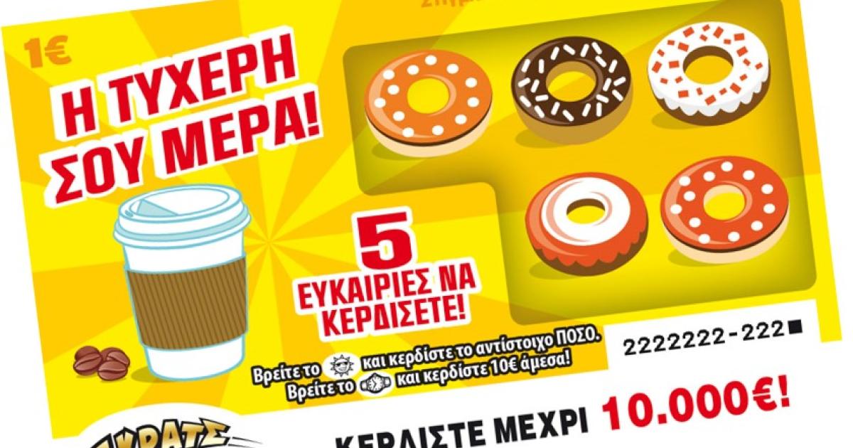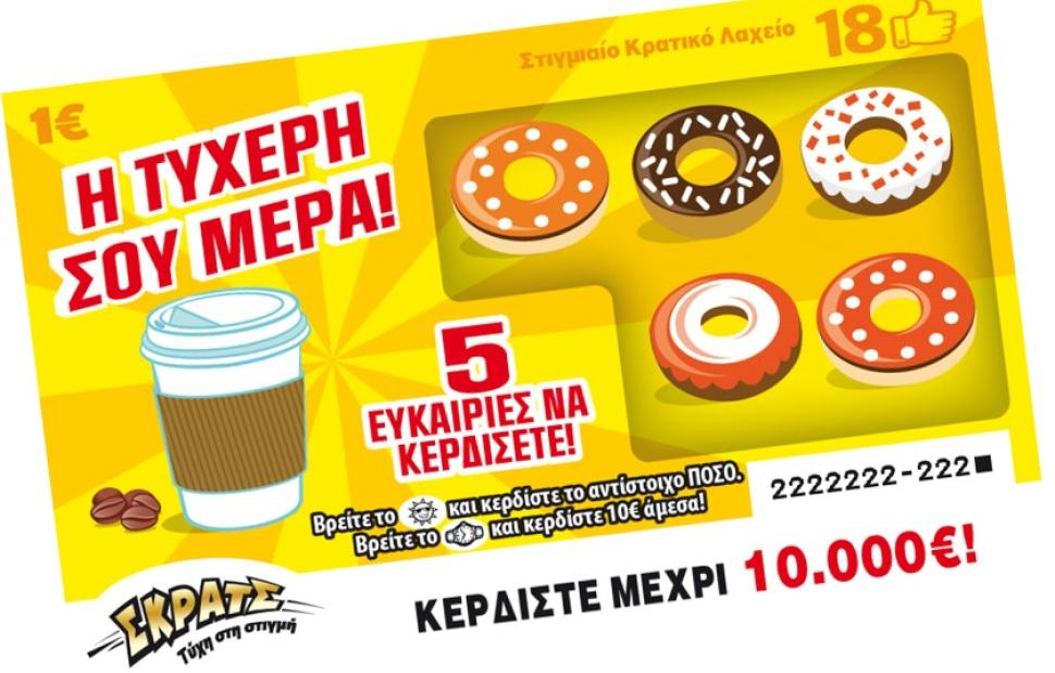 Ένα νέο παιχνίδι προστέθηκε πρόσφατα στη πλούσια γκάμα του ΣΚΡΑΤΣ. Πρόκειται για το παιχνίδι «Η ΤΥΧΕΡΗ ΣΟΥ ΜΕΡΑ», το οποίο μοιράζει κέρδη έως και 10.000 ευρώ.