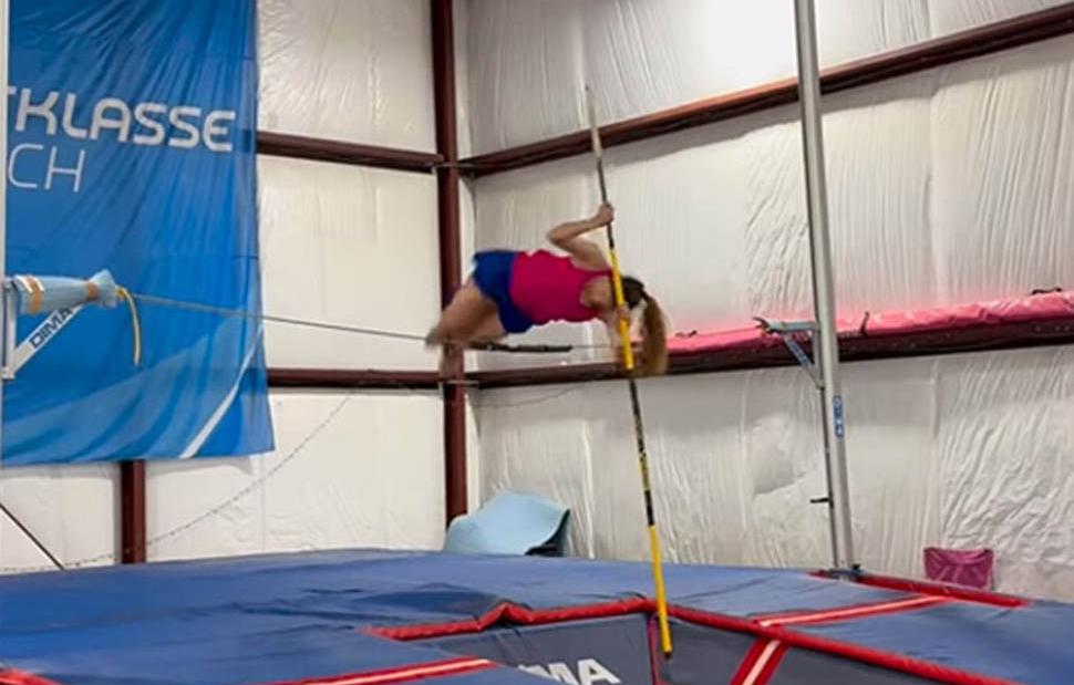 Η ίδια, μάλιστα, φαίνεται ότι κάνει και τις πρώτες απόπειρες να επιστρέψει στο επί κοντώ, στο άθλημα που την έφερε στην καρδιά του κόσμου μετά τις μεγάλες επιτυχίες με το εθνόσημο.