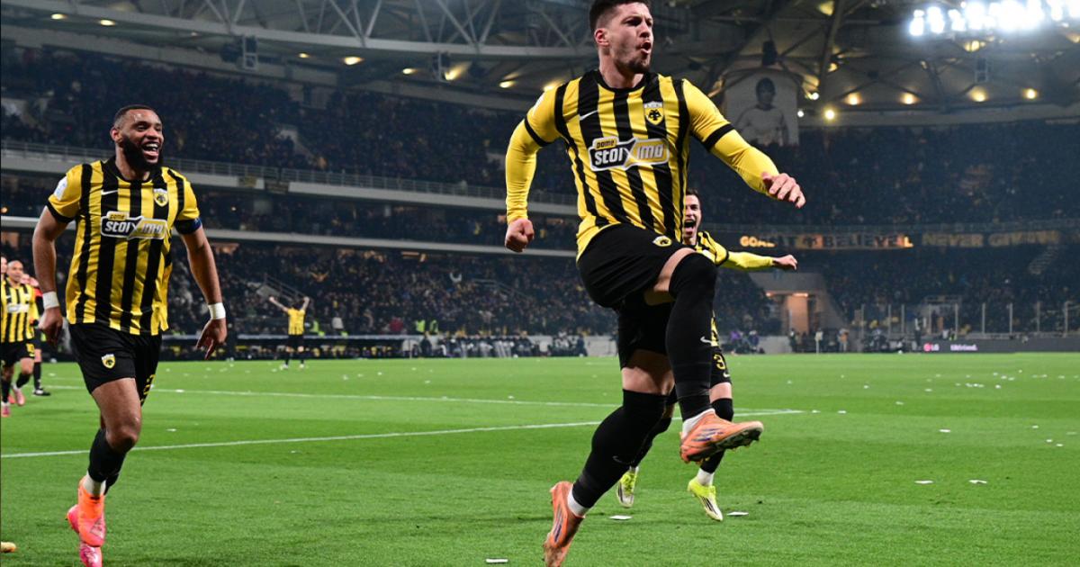 Με τον Λούκα Γιόβιτς να κάνει τρομερά πράγματα, «πυροβολώντας» από παντού και «εκτελώντας» ξανά τον Παναθηναϊκό, η ΑΕΚ συνέτριψε τους «πράσινους» με 4-0 στην OPAP Arena στο πλαίσιο της 17ης αγωνιστικής της Super League κι έπιασε τον ΠΑΟΚ στην κορυφή της βαθμολογίας, έχοντας έναν αγώνα περισσότερο απ’ τον Ολυμπιακό. Ο διεθνής Σέρβος επιθετικός σημείωσε αυτή τη φορά καρέ τερμάτων (15’, 57’, 65’, 80’), μετά το χατ-τρικ στον πρώτο γύρο στη Λεωφόρο κι έφτασε στα 11 γκολ στο πρωτάθλημα.
