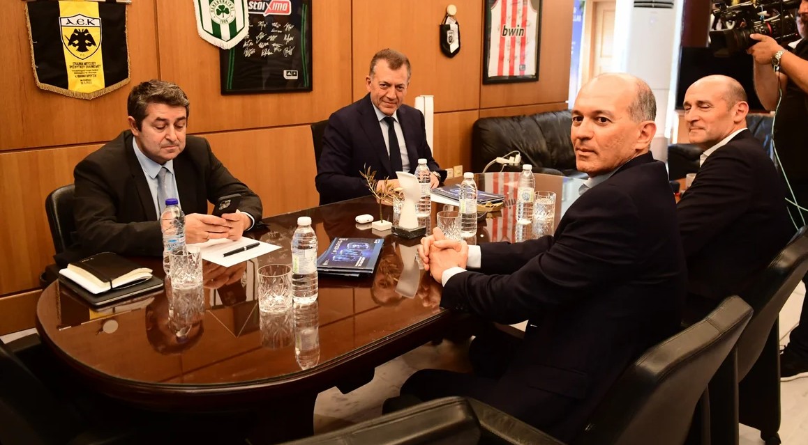 Συναντήσεις για το μέλλον των τελικών της GBL, είχε ο αναπληρωτής υπουργός Αθλητισμού, Γιάννης Βρούτσης, με τους ιδιοκτήτες των ΚΑΕ Ολυμπιακού και Παναθηναϊκού, στο υπουργείο Παιδείας, Θρησκευμάτων και Αθλητισμού.