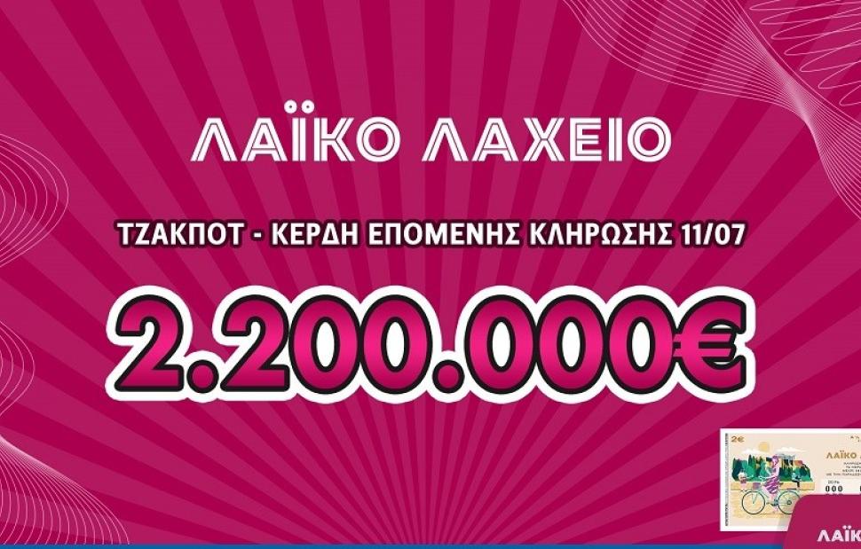 Το ποσό των 100.000 ευρώ κέρδισε ένας εκ των τυχερών της ειδικής καλοκαιρινής κλήρωσης του Λαϊκού Λαχείου, που πραγματοποιήθηκε την Παρασκευή 30 Ιουνίου.