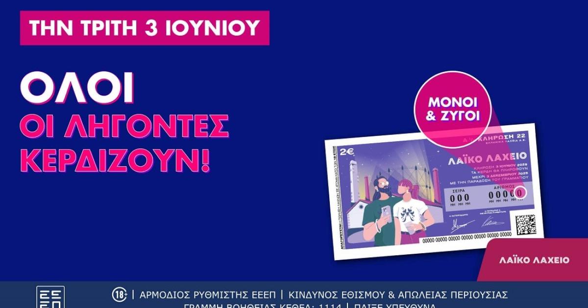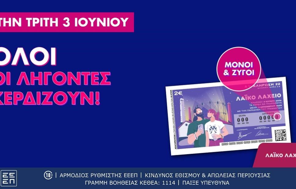 Οι παίκτες του ιστορικού παιχνιδιού του ΟΠΑΠ θα λάβουν εγγυημένα τουλάχιστον το 50% των χρημάτων τους για κάθε λαχνό, καθώς στην αυριανή κλήρωση όλοι οι λήγοντες κερδίζουν.
