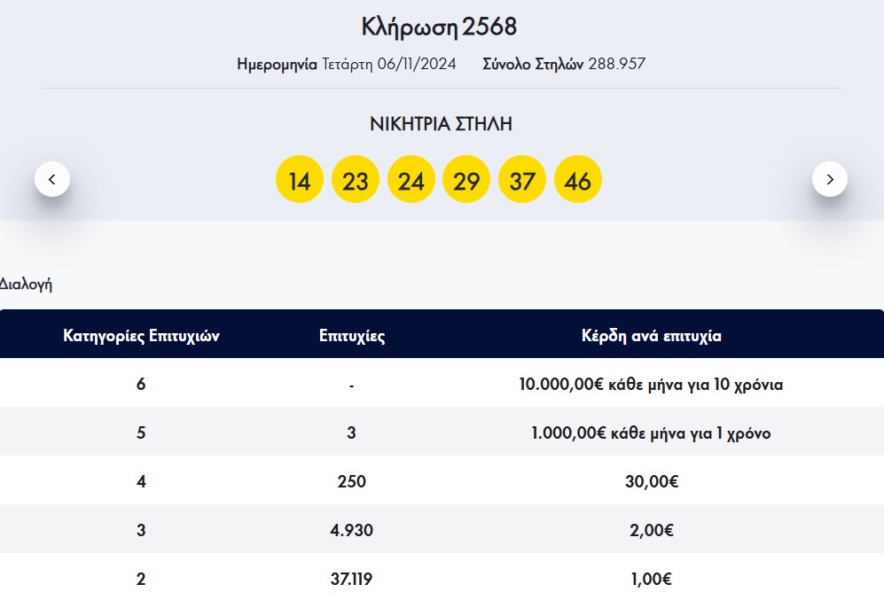 Δεν βρέθηκε νικητής στην πρώτη κατηγορία του Λόττο στην κλήρωση 2568 της Τετάρτης.