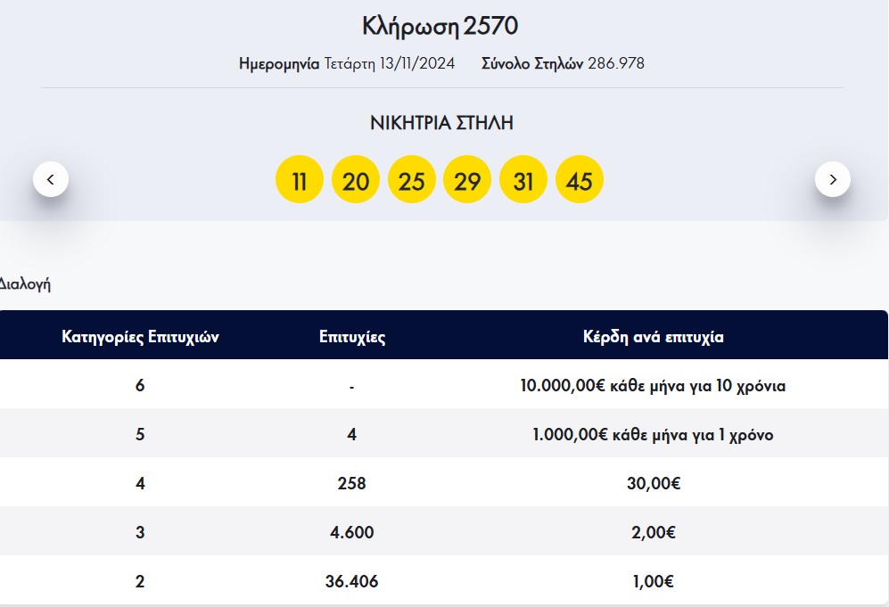 Δεν βρέθηκε τυχερός στην πρώτη κατηγορία του Λόττο στην κλήρωση 2570 της Τετάρτης.