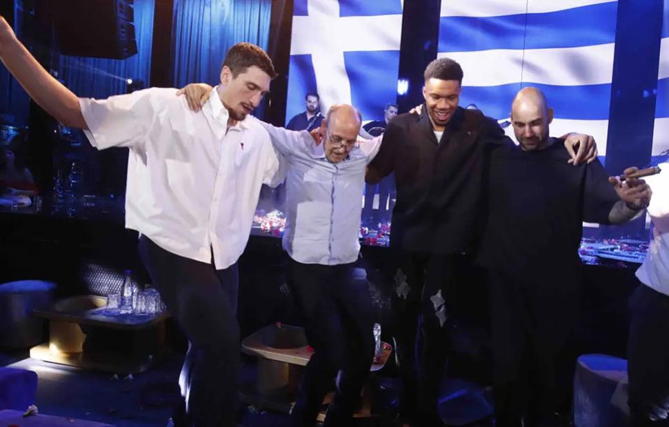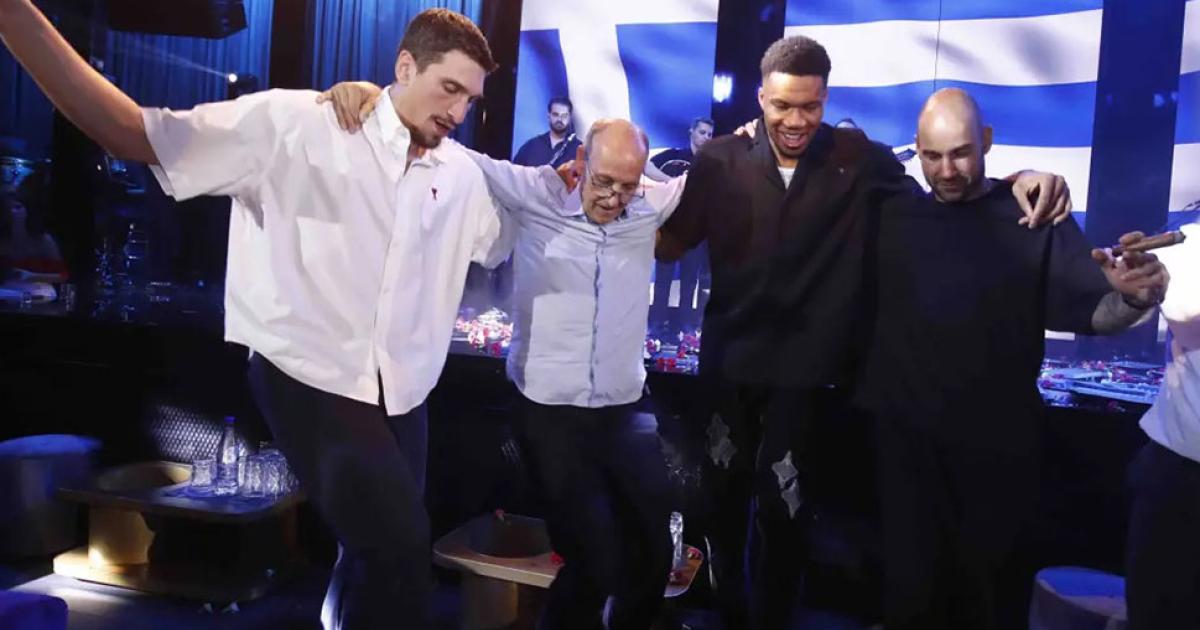 Το μαγαζί άνοιξε ειδικά για χάρη της Εθνικής – και μόνο – το βράδυ της Δευτέρας, με το πρόγραμμα να κρατά ως τις πρώτες πρωινές ώρες. Το κέφι χτύπησε κόκκινο, τα τραγούδια διαδέχονταν το ένα το άλλο και οι στιγμές ήταν μοναδικές. Πρωταγωνιστής της βραδιάς δεν ήταν άλλος από τον Γιαννούλη Λαρεντζάκη, ο οποίος – με τη γνωστή του ενέργεια – άρπαξε το μικρόφωνο και ξεσήκωσε τους πάντες. Στο πλευρό του, ο Βασίλης Σπανούλης, φανερά συγκινημένος και γεμάτος περηφάνια για τη νέα μεγάλη επιτυχία του αντιπροσωπευτικού συγκροτήματος, ενώ ο Γιάννης Αντετοκούνμπο δέχθηκε λουλούδια από όλους τους συμπαίκτες του.