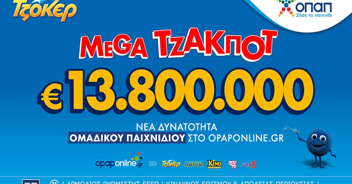 Όσοι θέλουν να διεκδικήσουν το mega τζακ ποτ στην αποψινή κλήρωση έχουν τη δυνατότητα να καταθέτουν τα δελτία τους και διαδικτυακά, από όπου κι αν βρίσκονται, μέσω του opaponline.gr και της εφαρμογής Opaponline App.