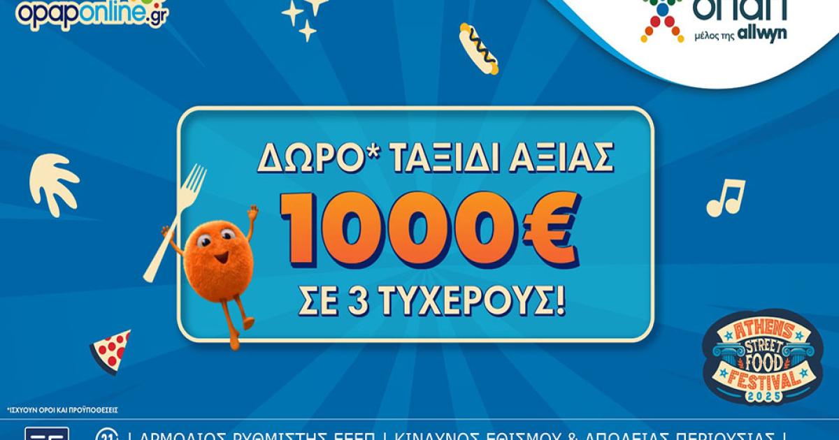 Μάλιστα, για εκείνους που θέλουν συνεχώς να γνωρίζουν νέες γεύσεις, το opaponline.gr τους δίνει την ευκαιρία να διεκδικήσουν ένα ταξίδι* σε έναν γαστρονομικό προορισμό, καθώς διοργανώνει έναν μεγάλο διαγωνισμό* για 3 ταξιδιωτικές επιταγές αξίας 1.000 ευρώ η κάθε μία, σε τρεις τυχερούς νέους παίκτες.